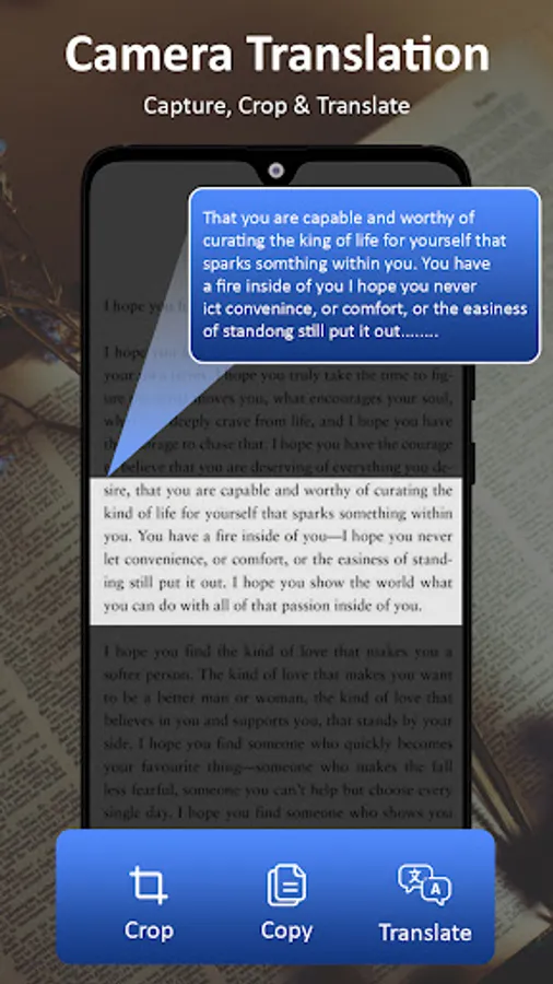 Open the camera of your smartphone and take a picture of the text, the auto translator will translate the content into your desired language. You can use this feature as a chat translator to translate text chats or any content into your desired language. Empower your communication strategy with a fast translation feature.