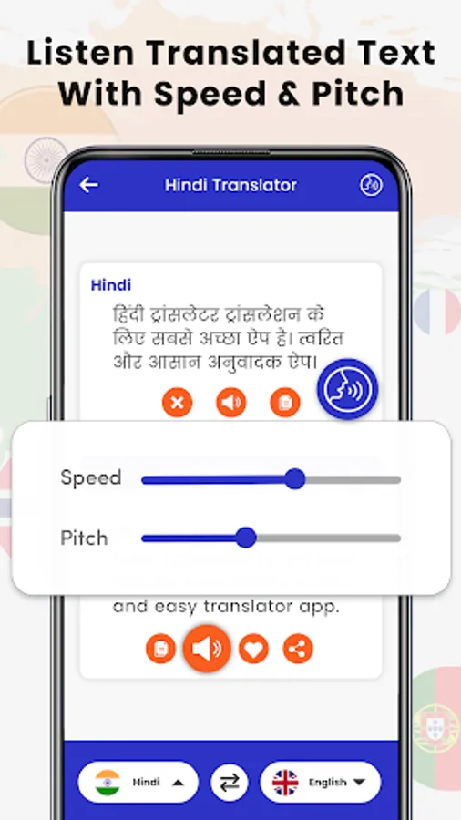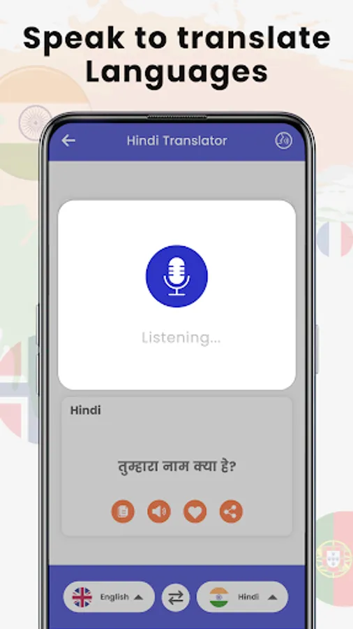 ⚈ Speak Hindi or any language to translate text. Hindi English Language translator app on hearing the voice of the text translates words and phrases into the desired language.