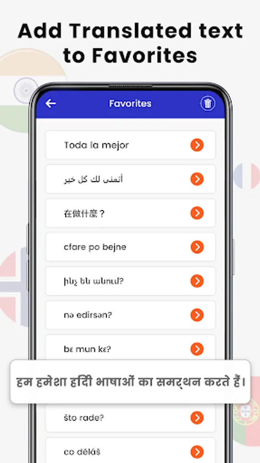 You can add words and text translation into favorites translations for later use with easy access on English Hindi translation app.