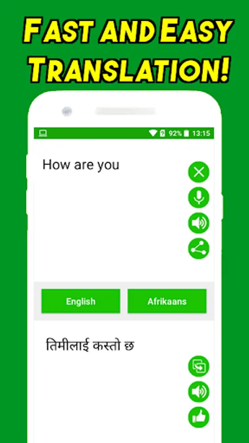 Translated from Nepali to English and English to Nepali, you can translate text and voice