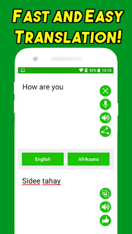 Translated from Somali to English and English to Somali, you can translate text and voice