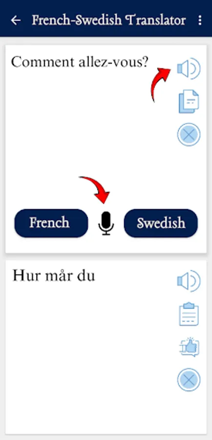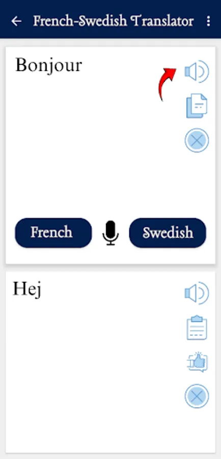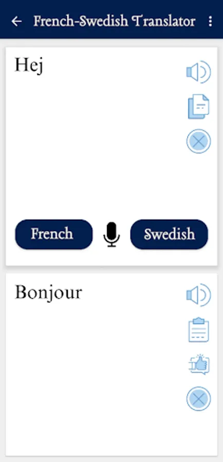 Use this Language translator with Swedish French translation (traduction suedois francais). Instant translation and the full validity of the words from the french swedish translator. Useful translator app for students, tourists or travelers.