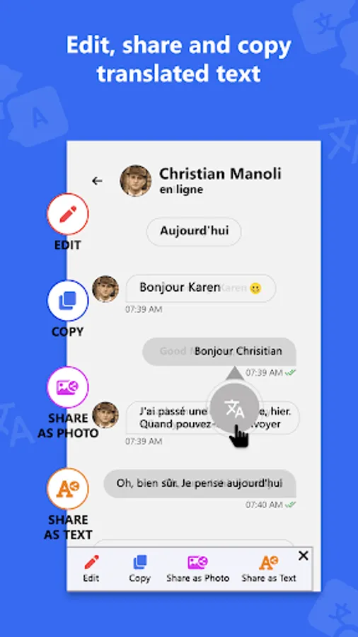 - You can also copy selected & translated text, share translated text, and pronounce the translated text.