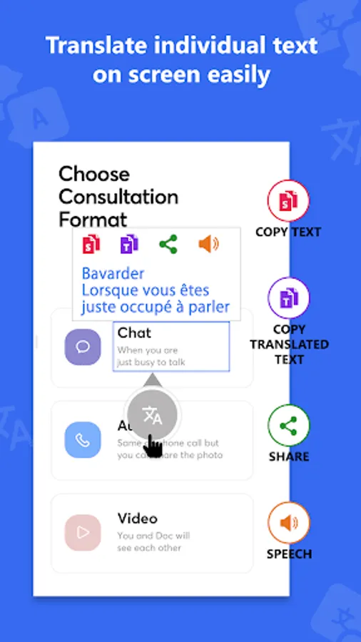 You can also translate individual text from any document that is present on your phone. You just need to set the floating icon on the word or text and you will get its translated text instantly in your preferred language.
