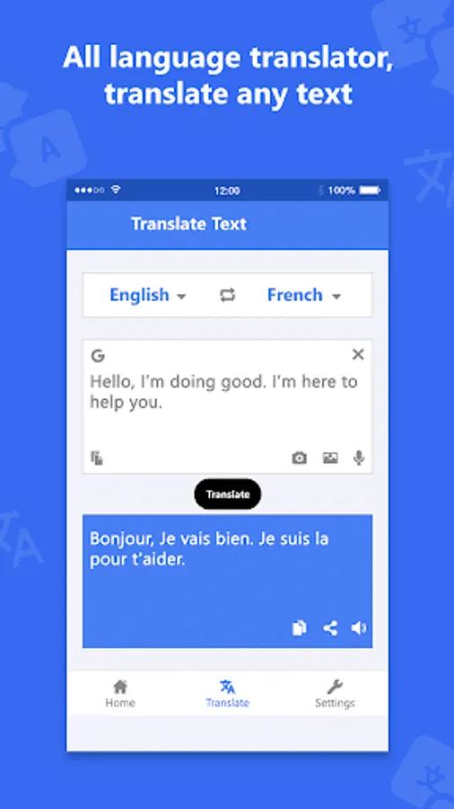 - Click on the Translate button and the app will translate the text into the second language that you have selected.