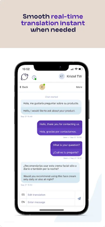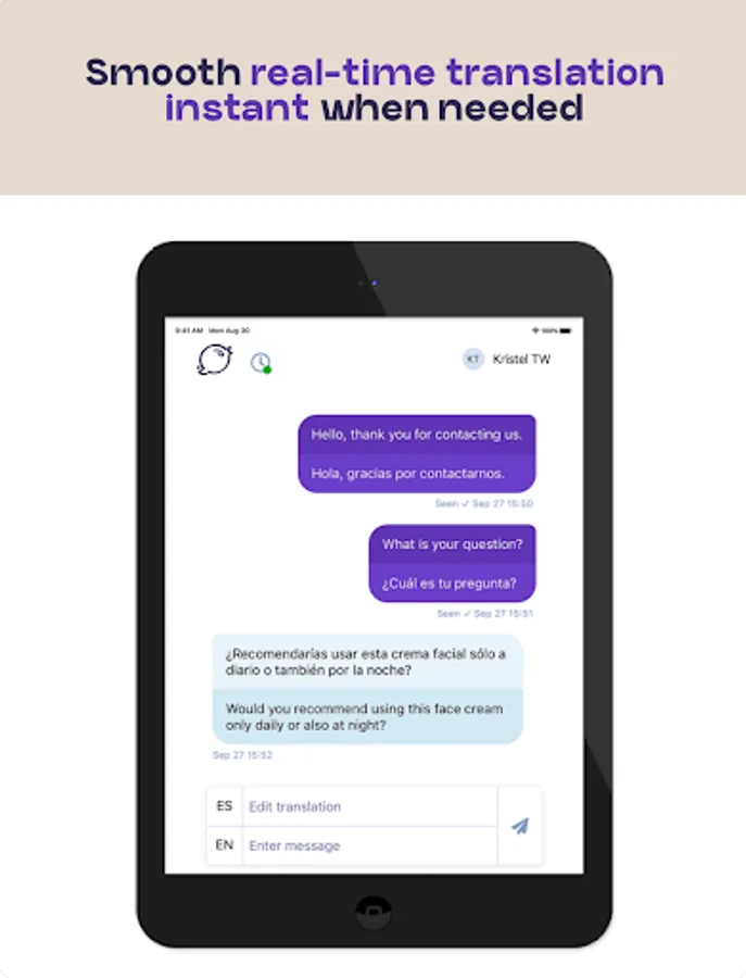 It's the only chat, that opens to every visitor in their mother language and applies smooth and seamless translation to the conversations when needed.