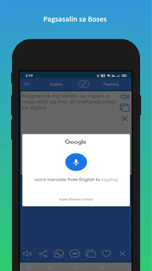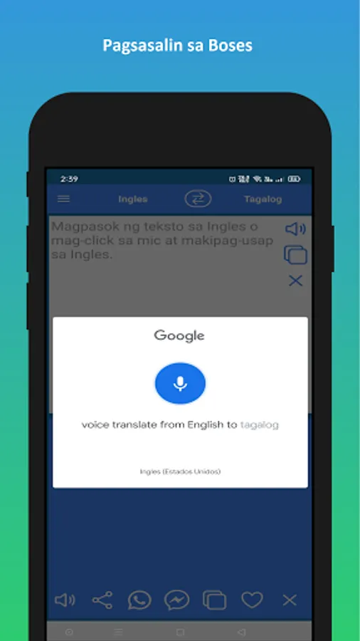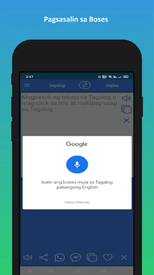 ✓ 4. Voice typing in Tagalog. Voice Translation from Tagalog to English.