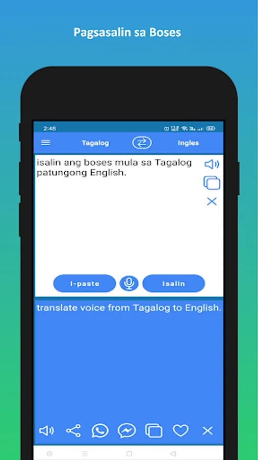 A) Click on 'Paste' button and our English to Tagalog Translator app will translate the text.