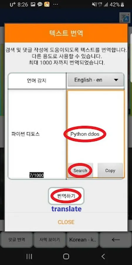 3. It can be used for various purposes such as entering text to be translated in the set language, searching in the translated language, copying the translated language, and writing comments.
