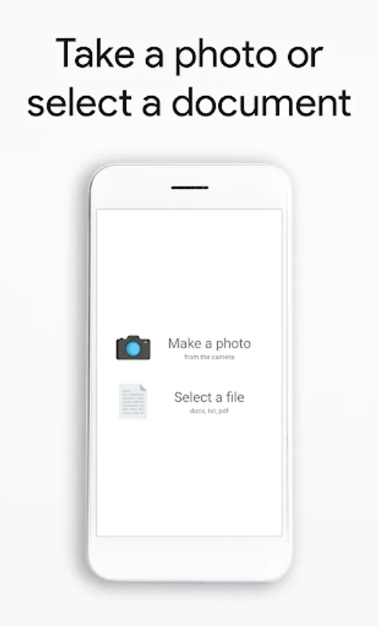 The application translates photos from the camera, as well as documents such as Word, Txt, Pdf files into more than 100+ languages: