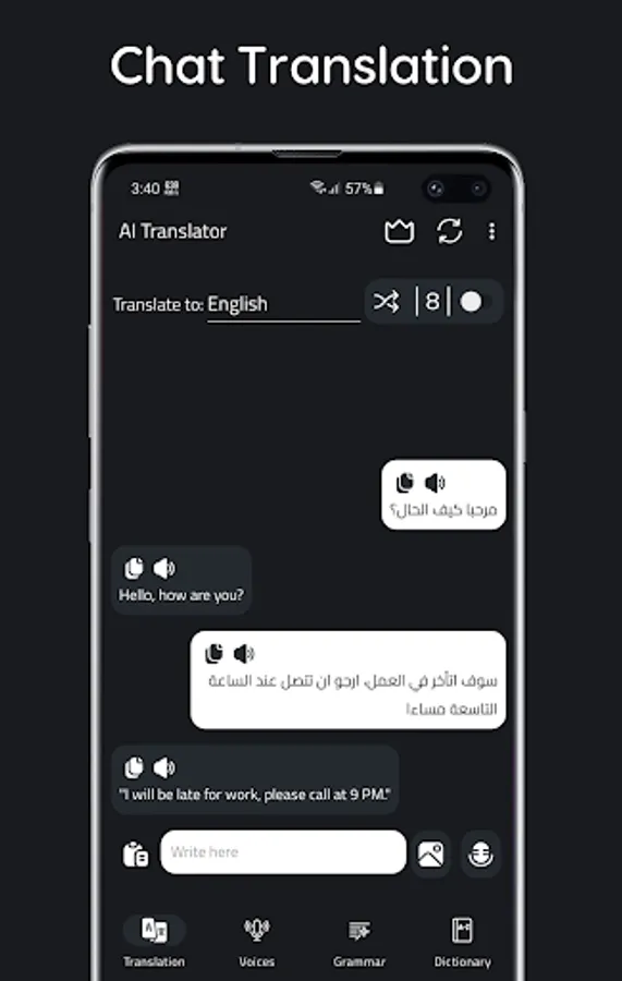 AI Translator is an innovative and cutting-edge translation application powered by the state-of-the-art artificial intelligence technology, you can experience seamless and accurate translations like never before. Whether you're a professional translator, a language enthusiast, or someone seeking to communicate effortlessly across different languages, AI Translator is your go-to solution.