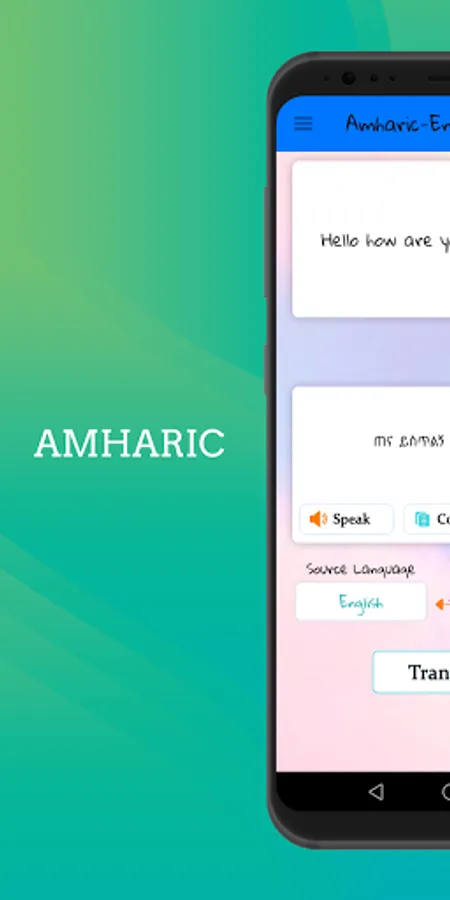 The Amharic to English translator app has an excellent feature of speaker icon that when you translate something the translated word or sentence is pronounced in their following accent if you press the speaker icon. You people are really gonna love the accent of Amharic and English both.