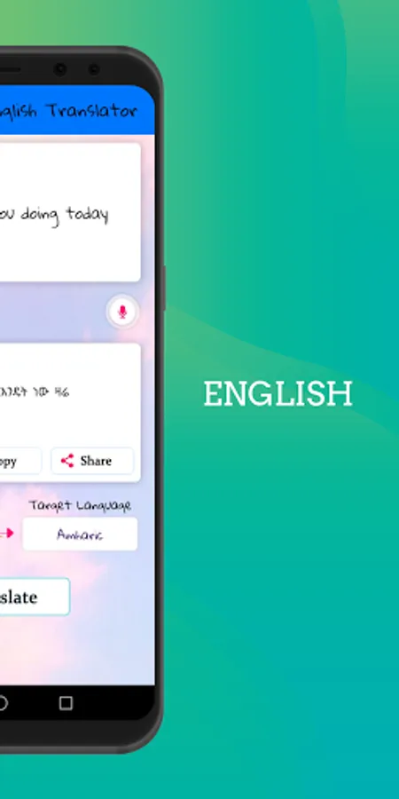 The Amharic to English translator app is capable of translating any text letter, word, sentence, paragraph or copied clipboard text into Amharic to the English language or English to the Amharic language. You just need to write down or copy-paste the text you want to translate..then press the translate bar and there comes your desired translation of the text.