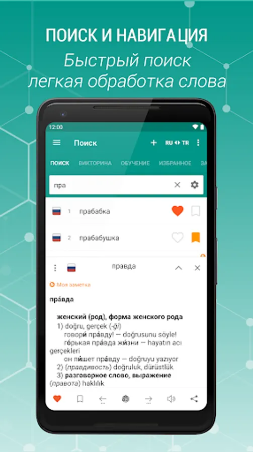 Russian-Turkish and Turkish-Russian - free offline explanatory dictionary with easy and functional interface, covering over 75,000 words
