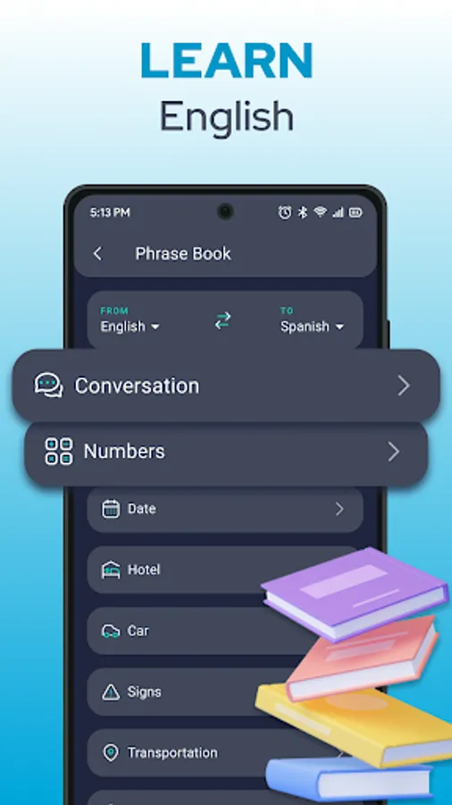 ✅ The app also includes a phrase book, providing ready-made expressions for various situations, such as greetings, dining, and emergencies.