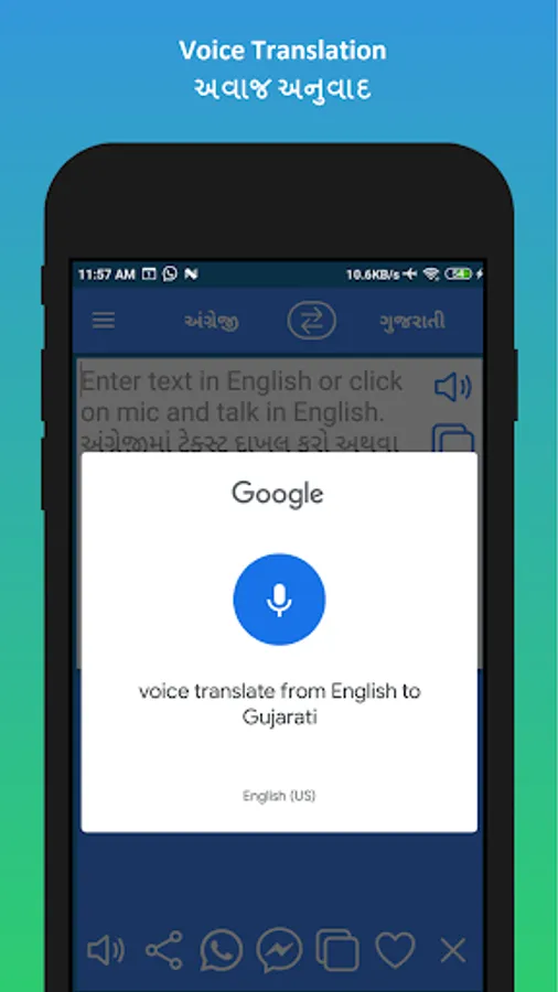 ✓ 4. Voice typing in Gujarati. Voice Translation from Gujarati to English.