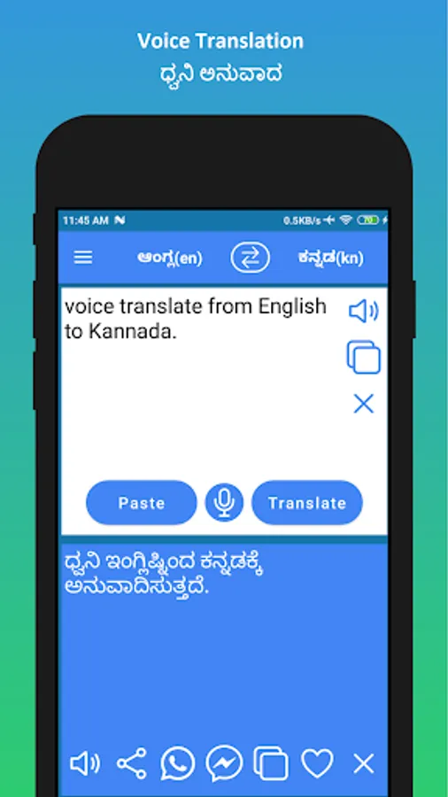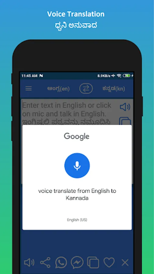 ✓ 4. Voice typing in Kannada. Voice Translation from Kannada to English.
