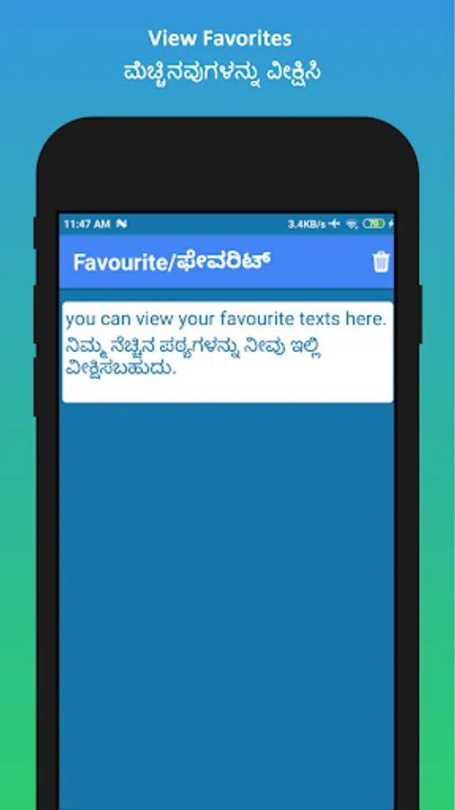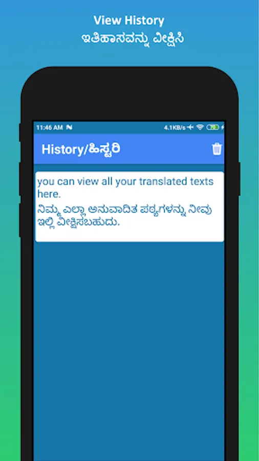 ✓ Using inbuilt voice recognition technology, you can type your text using your voice and then translate the text. This convenient feature allows you to translate regular conversations. You can translate your English voice to Kannada and Kannada voice to English.