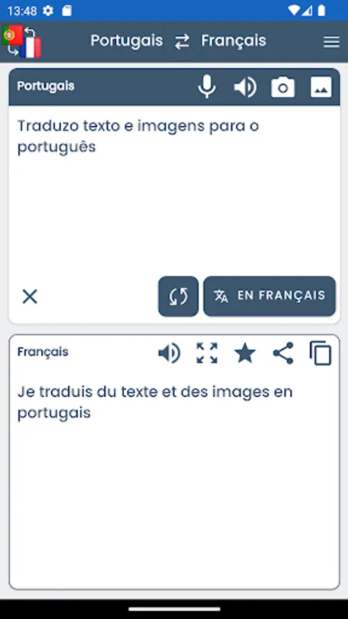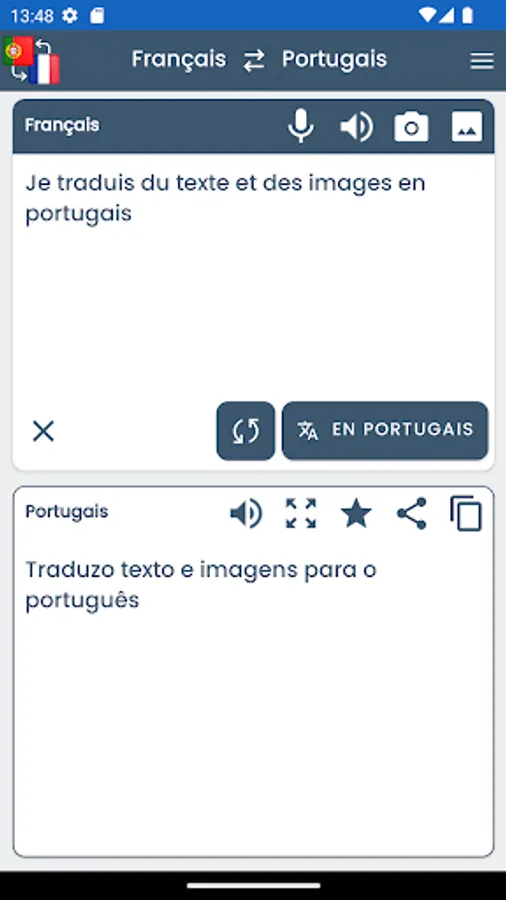 Free application allowing to translate French and Portuguese languages.