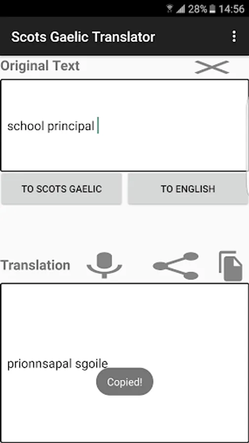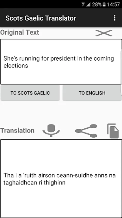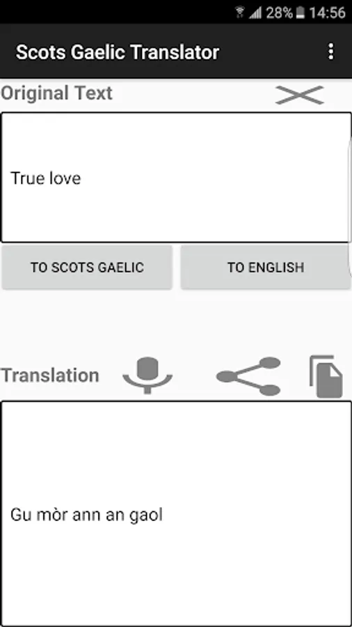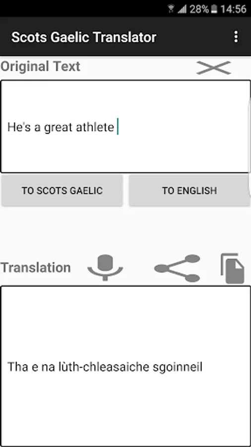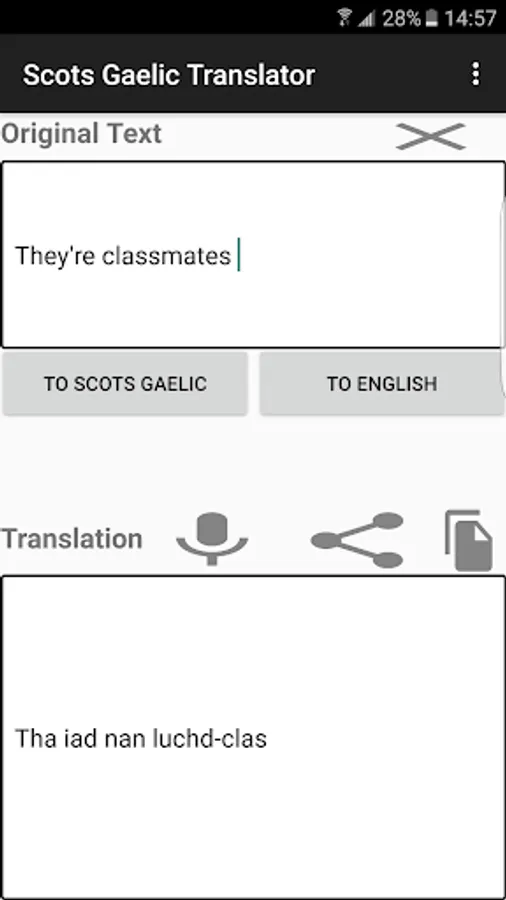 Learning Scots Gaelic or visiting a Scots Gaelic speaking country? Ease your learning/communication by translating any English or any other language word/sentence to Scots Gaelic.