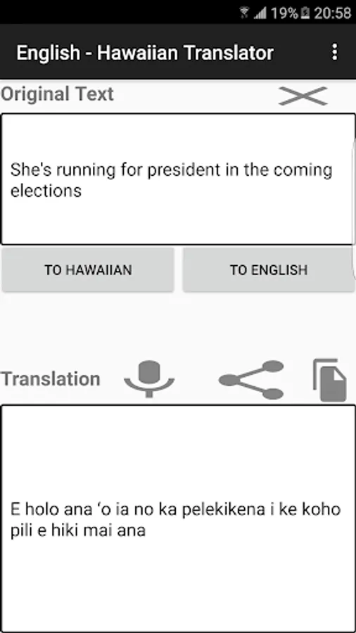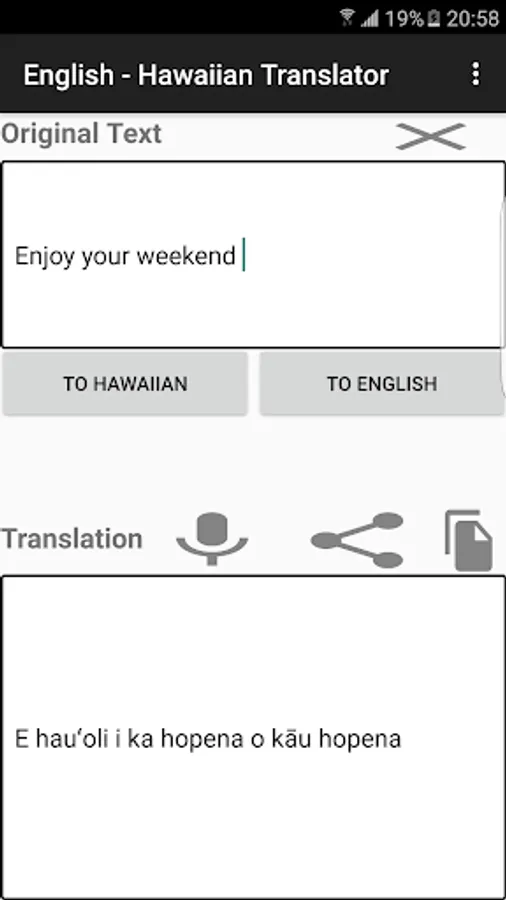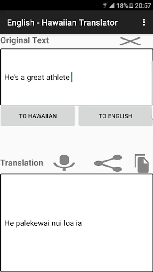 Learning Hawaiian or visiting a Hawaiian speaking country? Ease your learning/communication by translating any English or any other language word/sentence to Hawaiian.