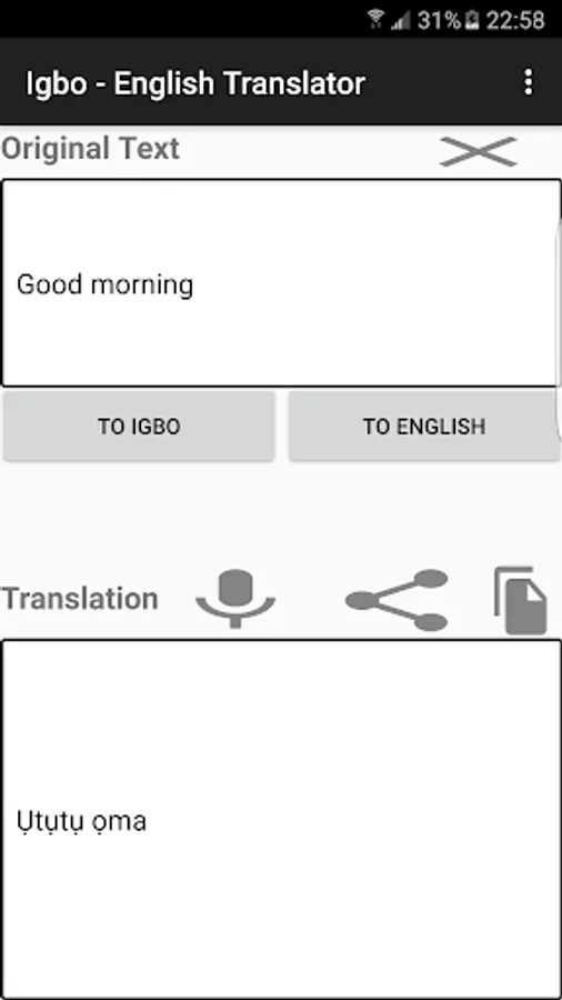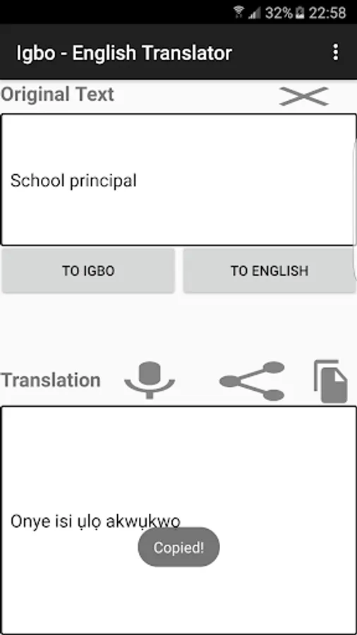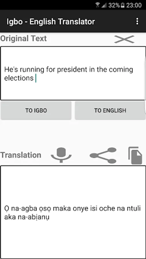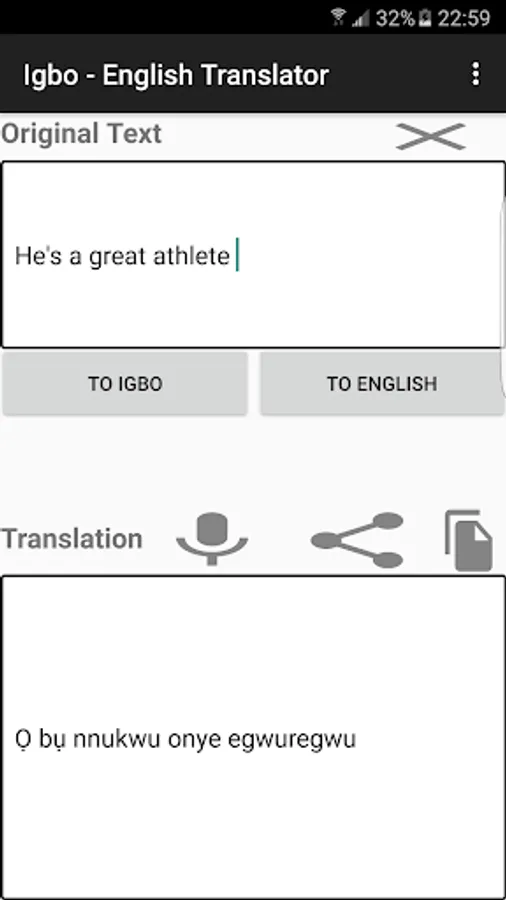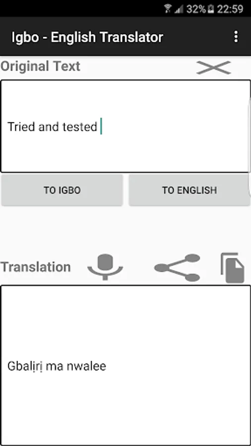 Learning Igbo or visiting an Igbo speaking country like Nigeria or Equatorial Guinea? Ease your learning/communication by translating any English or any other language word/sentence to Igbo.