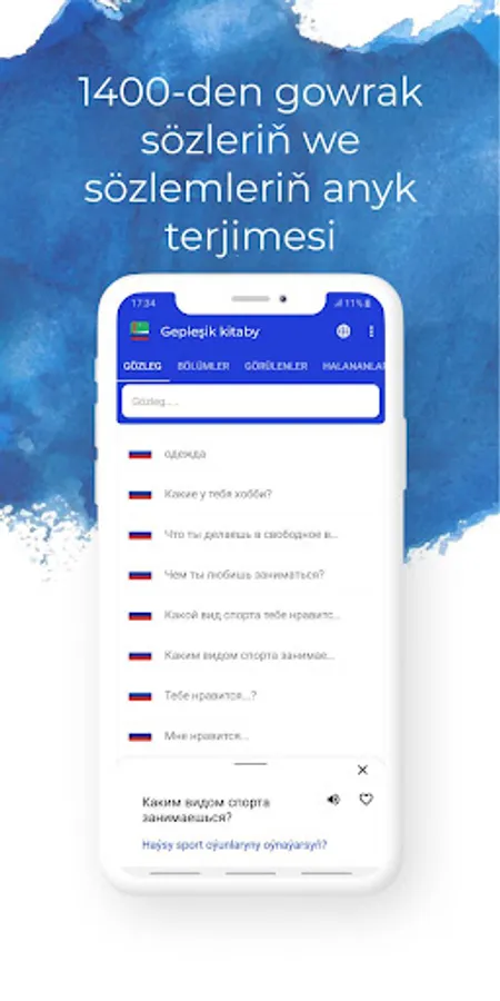 "Türkmençe-Rusça Gepleşik kitaby" Olar size syýahatlarda, daşary ýurtlular bilen duşuşanda, adatdan daşary ýagdaýlarda we başga-da köp ýagdaýlarda hyzmat eder.