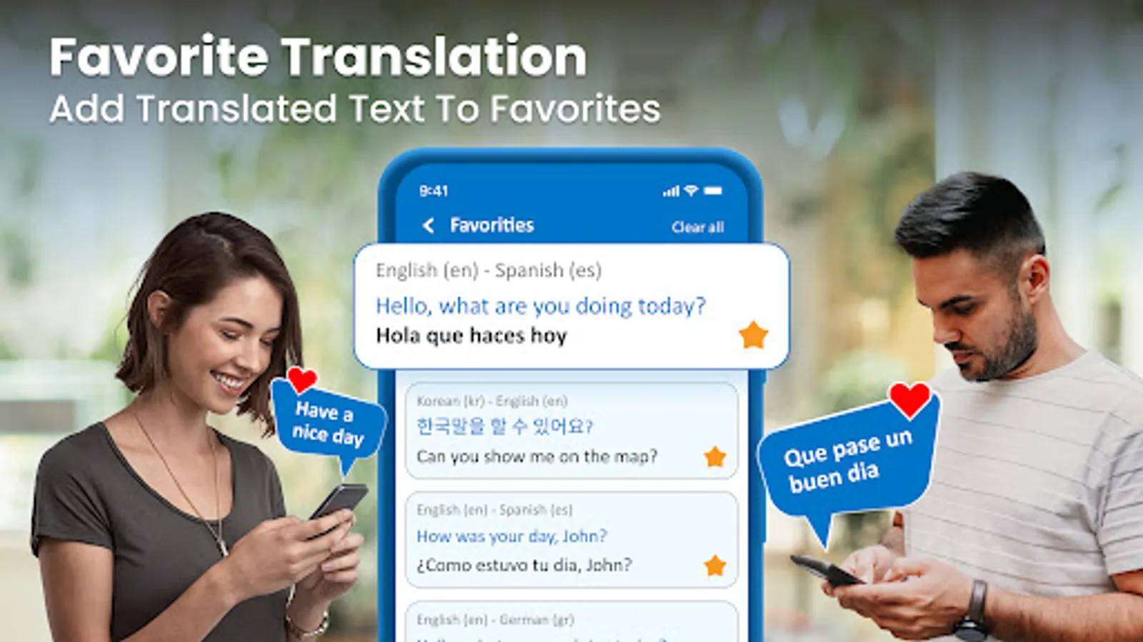 In Translator Speak and Translate,you can mark your commonly used text/phrases that you translated before as your favorite.