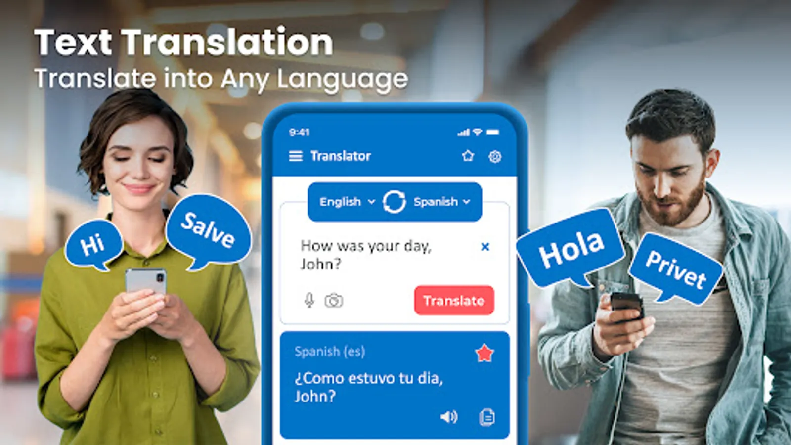 Translator Speak and Translate can translate any text into speech of any other language. It is a useful language translator because it translates the speech of any language into the voice of your desired language so you can communicate with people easily with this free voice translator app.