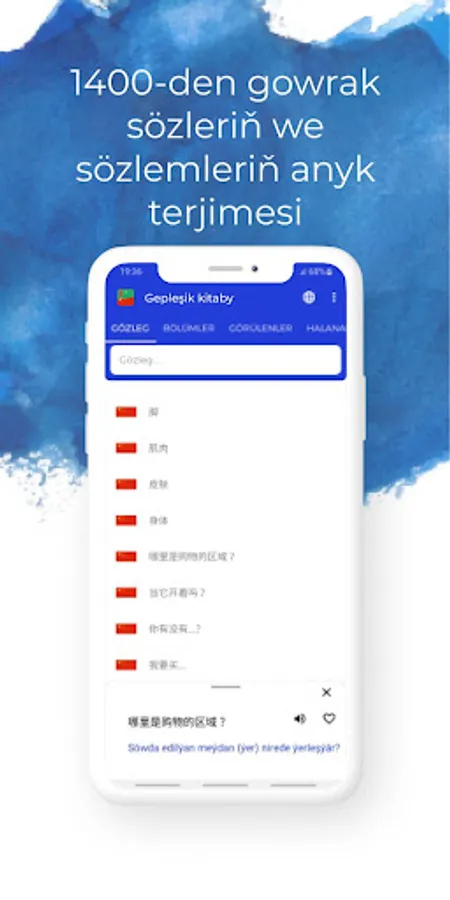 The "Turkmen-Chinese phrasebook" contains over 1400 of the most common words and phrases. They will serve you well on trips, in meeting with foreigners, in emergency situations and in many other cases.