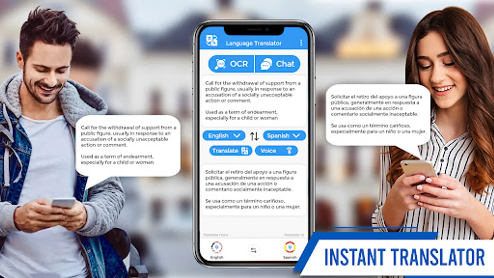 Screen translator detects all voices of conversation. Translate language chat makes voice to voice translation in any language. Translate voice into all languages by real time speak to translate and quick translate voice into any language of the world. Voice translation is used language service to detect voice and translate voice to understand any language online.