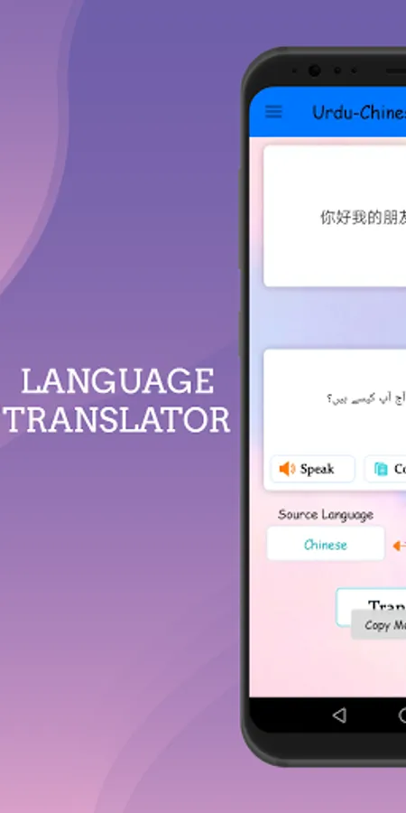 The Urdu to Chinese translator app can translate Urdu text, letter, word, sentence, paragraph, or copied clipboard text into Urdu to Chinese language or Chinese to the Urdu language. You just need to write down or copy-paste the text you want to translate Urdu.
