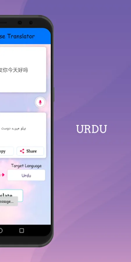 -The Urdu translation result -Chinese translator / Chinese to Urdu can be shared into your social media accounts like Facebook, Whatsapp, hangouts, messaging, email,
