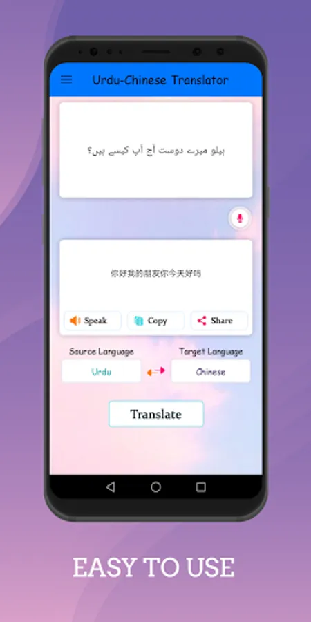 -The Urdu - Chinese translator /Chinese to Urdu translator has a straightforward user interface for instant translations.