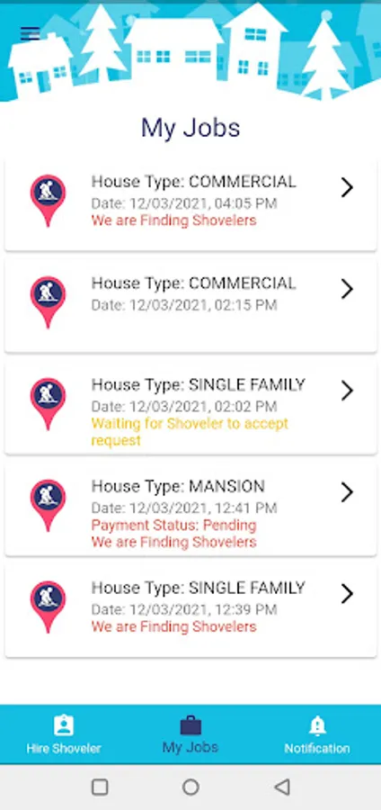 Customers can hire shovelers and Shovelers can create their profile in the app to offer Services to the customers.