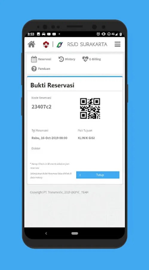1. Reservasi di app yang sudah di download