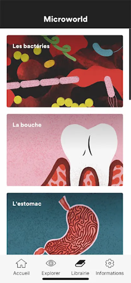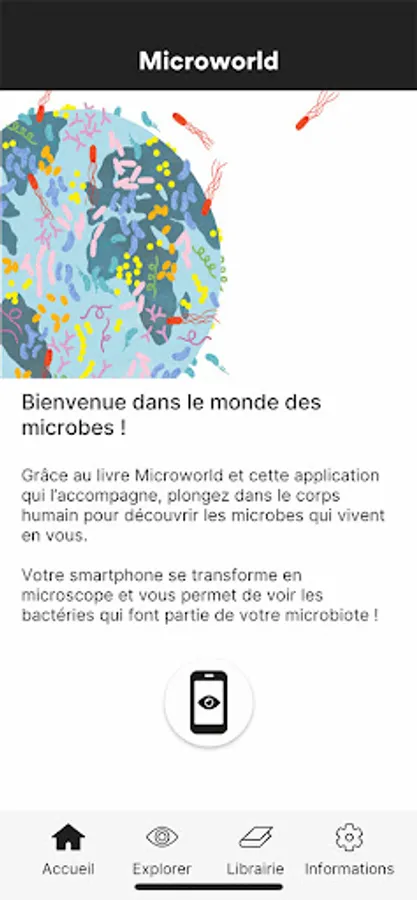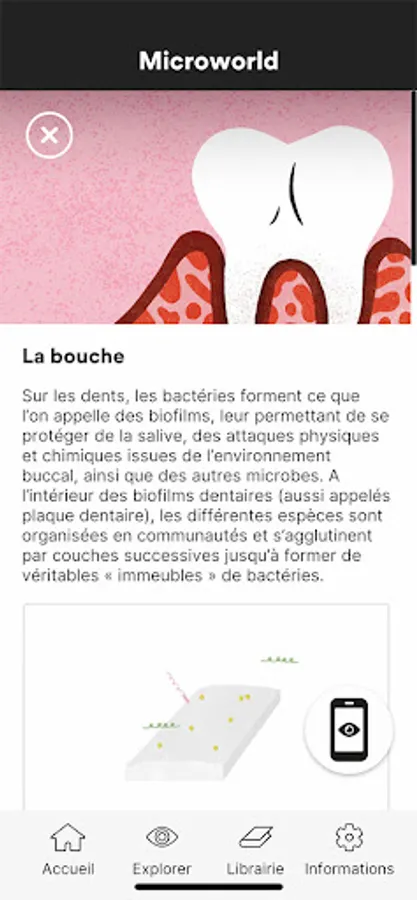 Microworld is a new kind of work, accessible to everyone, far from the traditional biology book, which allows us to dive in three dimensions into the reality of the infinitely small, microbes and their interactions with our body.