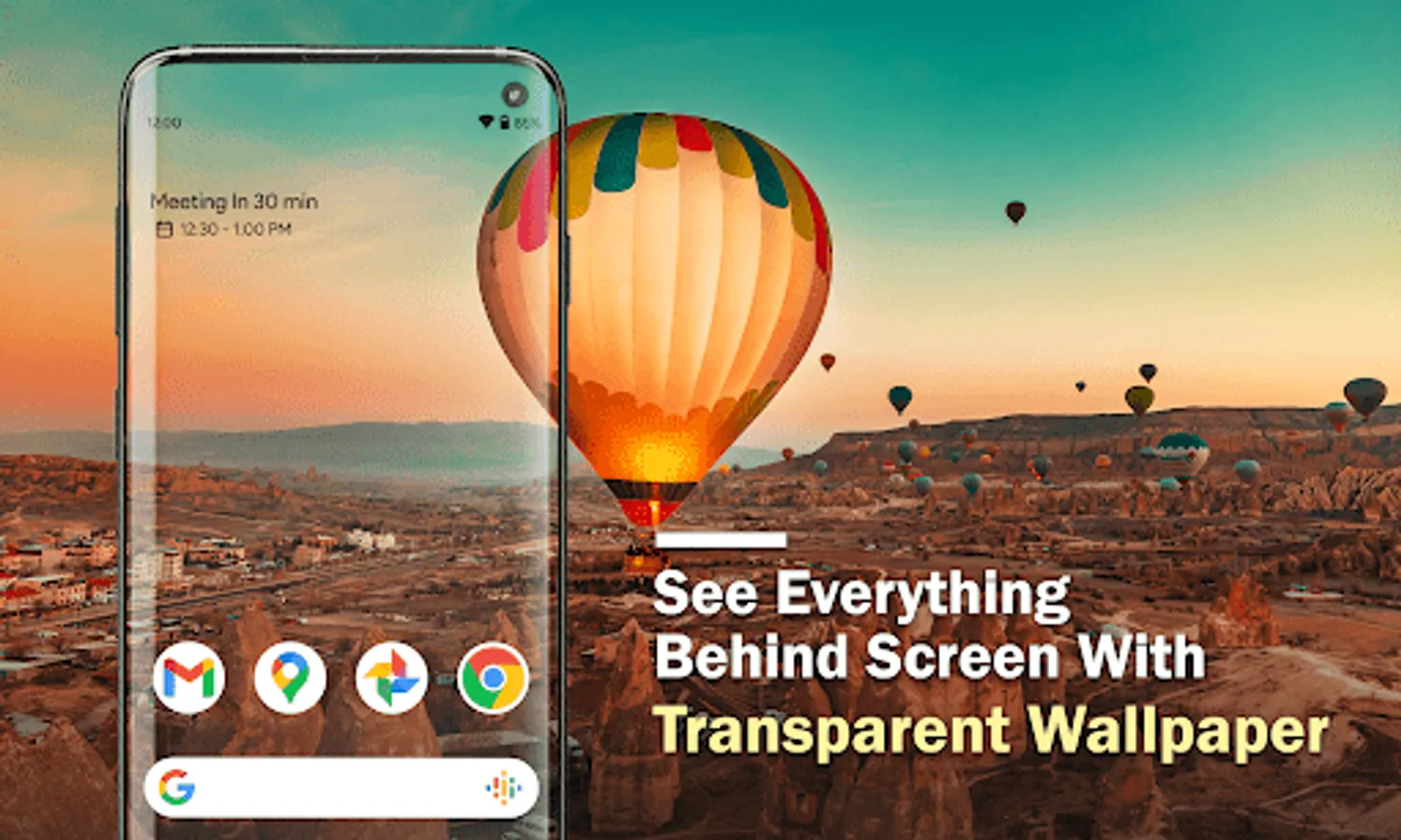 Transparent Wallpaper will show the desktop as your Home Screen and Lock Screen using your phone's front and rear cameras. The transparent live wallpaper offers realistic transparency, meaning you can see through the screen with a transparent background.