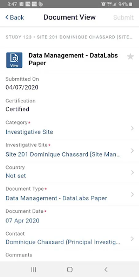 - Document Submission: Securely capture documents with the mobile device camera and add to the eTMF