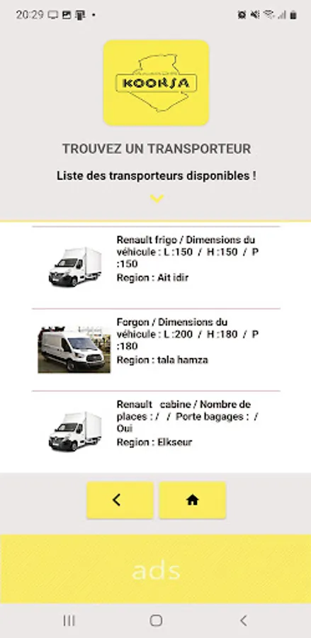 Grace à cette application vous pouvez trouver un transporteur gratuitement en un clic dans toute l'Algérie, les transporteurs peuvent s'inscrire gratuitement pour proposer leurs services à des clients potentiels.