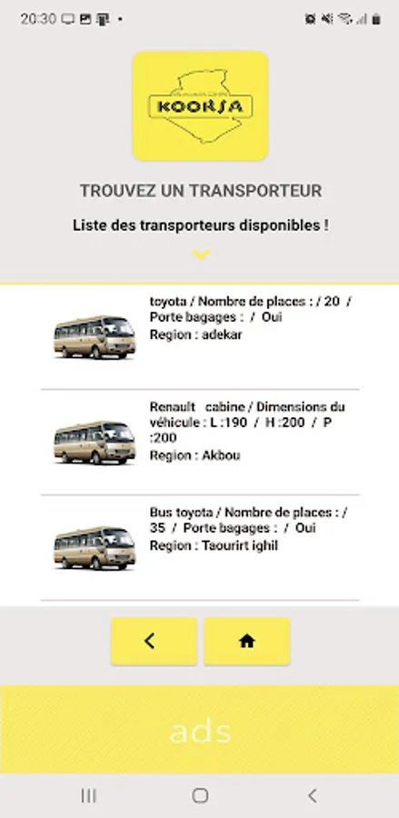 بفضل هذا التطبيق ، يمكنك العثور على شركة نقل بنقرة واحدة في جميع أنحاء الجزائر ، ويمكن لشركات النقل التسجيل مجانًا لتقديم خدماتها للعملاء المحتملين.