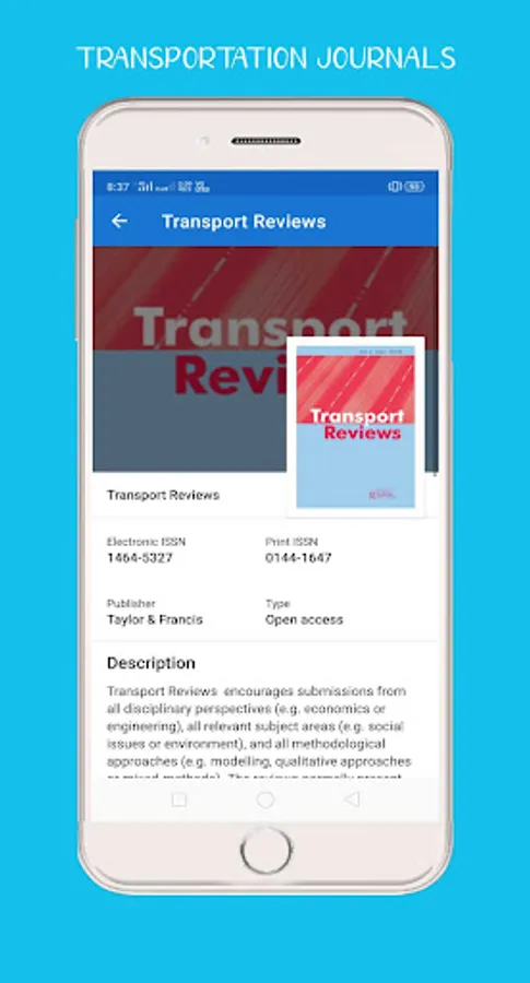 This application includes all Transportation Journals, which will be useful for Researchers, Teachers and Students from Transportation domain. It has plenty of features like read, search and bookmark articles from different publishers.