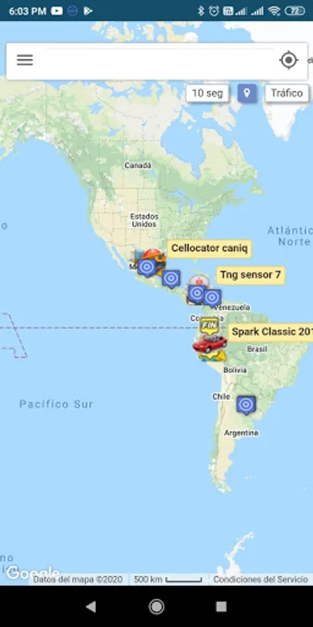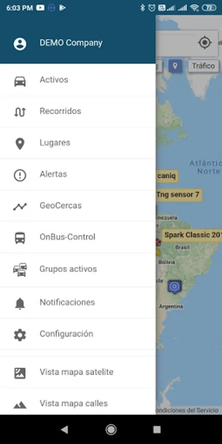 The mobile application complies with all the characteristics of a GPS module, such as; real-time monitoring, fuel level, remote opening of doors, creation of geofences, creation and reception of alerts, history of journeys, engine stoppage, sending of commands, among other functions.