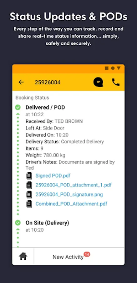 Receive a booking directly to the Courier Exchange mobile app with full details including; contact names, addresses, references, consignment details and any special instructions.