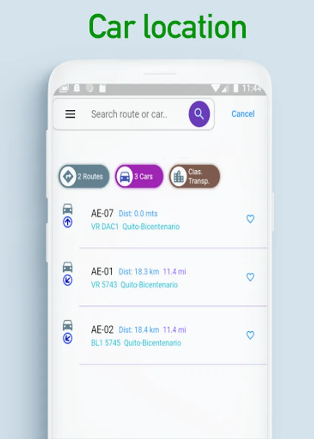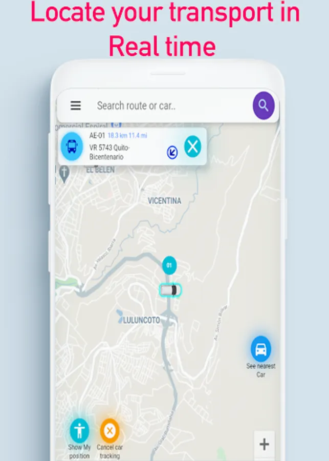 The transporty app has powerful integrated vehicle location tools: