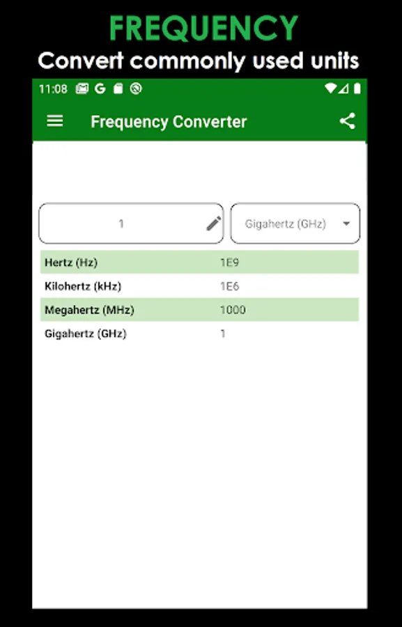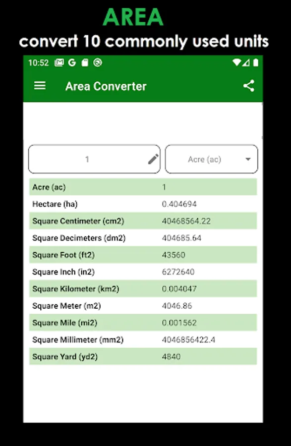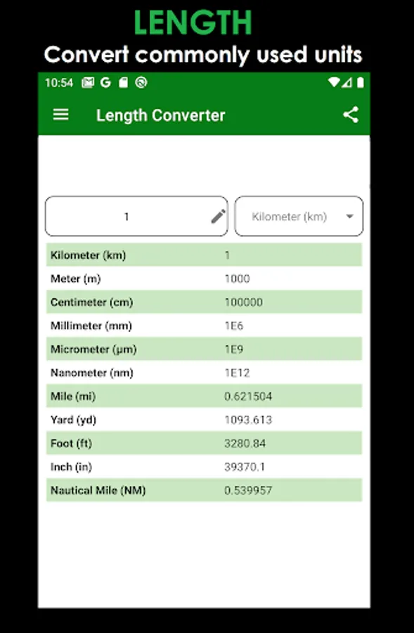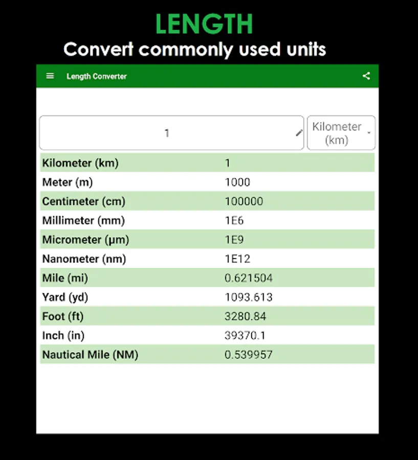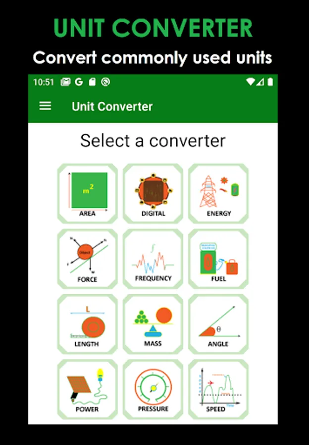 ► Access or Navigate between 15-unit converters from the menu located on top-left corner of the screen.