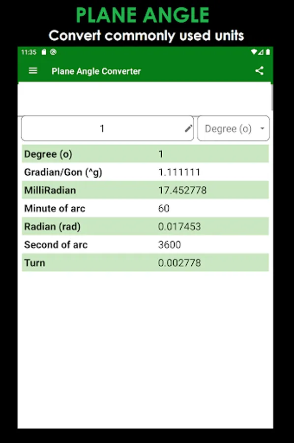 ► Plane Angle - Units of measure like Degree, Gon, Radian…