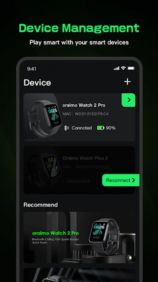 Device management: Enable call push, message notification, alarm, weather, health tracking for your smart wearable device...
