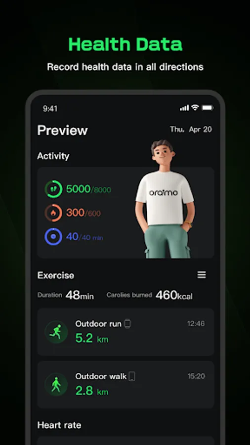 Track your health data: Track steps, calories, heart rate, sleep, and pay attention to changes in your health .