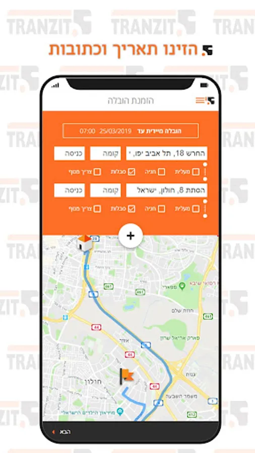 Our vision is to streamline the transportation business in Israel by connecting returning carriers from the destination with empty trucks from the container to private customers and businesses who need immediate transportation in their vicinity. We are proud of our ability to increase the revenues of freighters, provide cheap and fair service to our customers, and minimize the environmental damage caused by the multitude of empty truck trips.